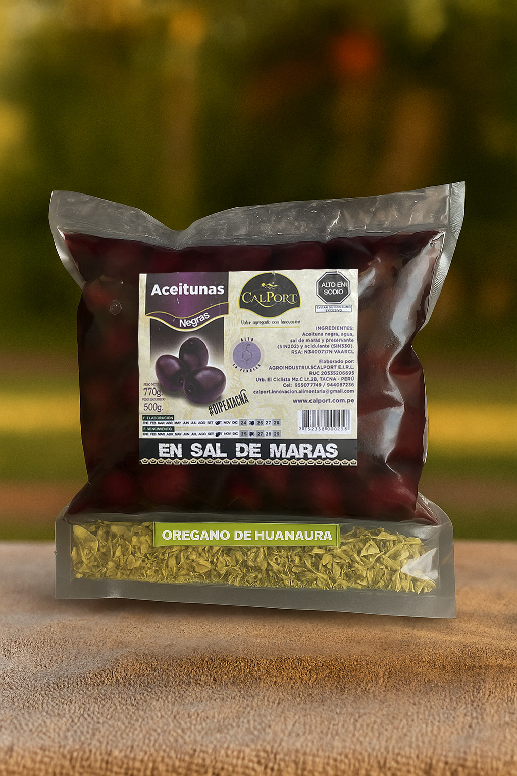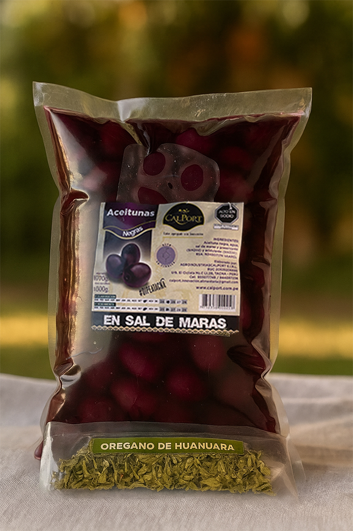 Aceituna Botija Primera en Sal de Maras — curada con una sal milenaria rica en minerales y con menor sodio, brindando un sabor profundo y saludable.